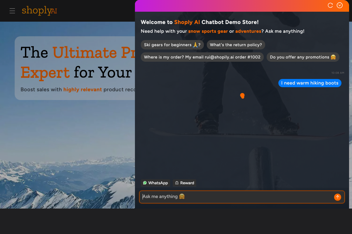 Shoply AI handles the product-specific questions behind cart hesitation, whether a camera works with an existing NVR system or whether boots run true to size. The chatbot pulls answers from your product data in seconds. For a deeper look at this mechanic, see our guide to reducing cart abandonment with AI chatbots .
