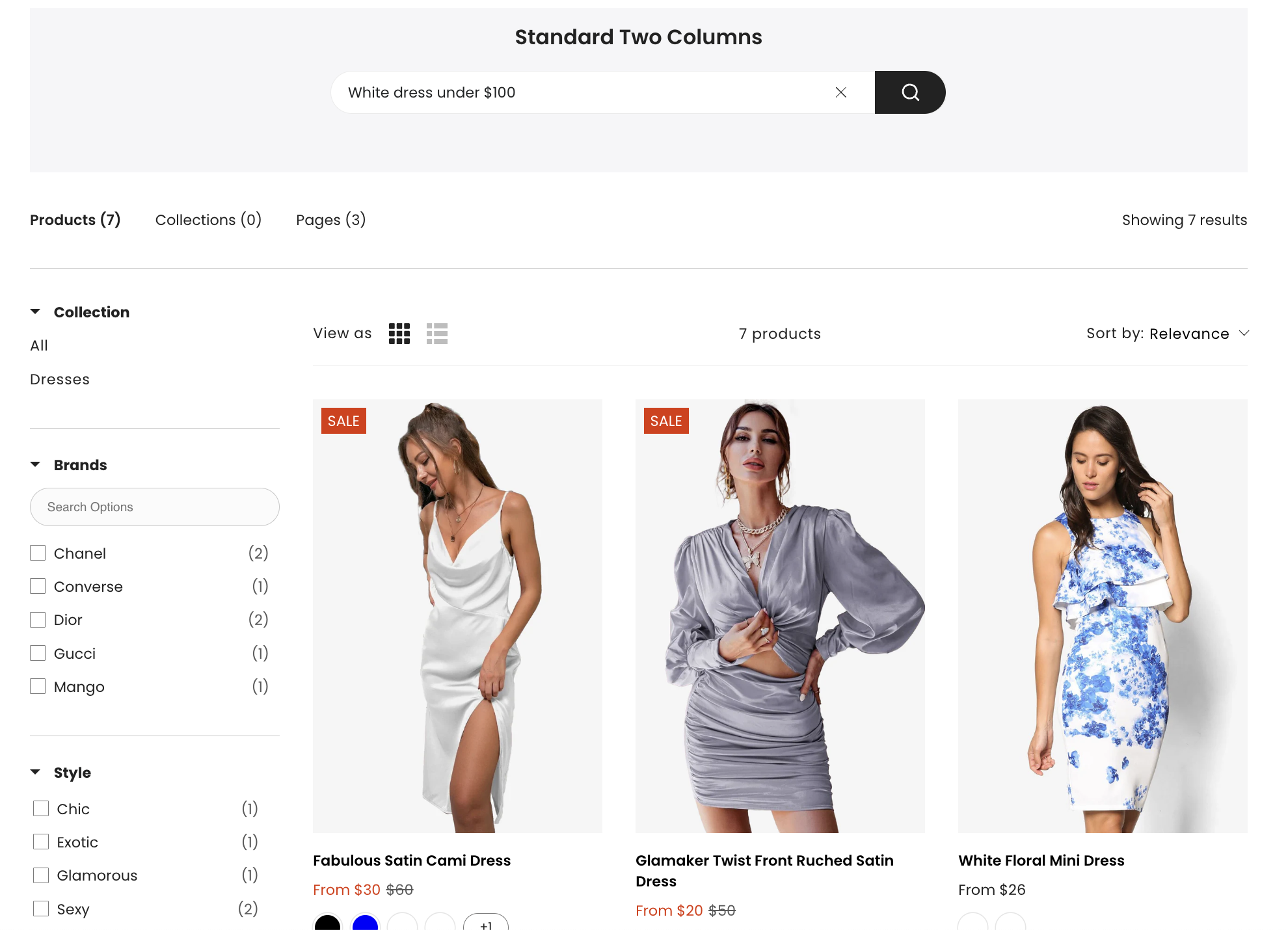 - Custom Filters: Filter by price, brand, color, size, metafields, and tags