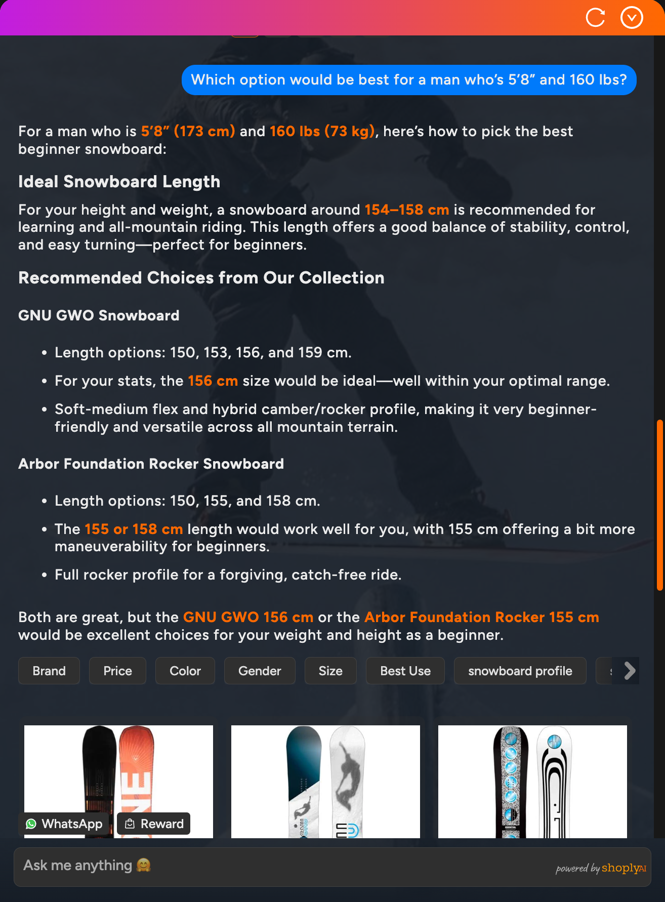 5. Customer can ask: “Which option would be best for a man who’s 5’8” and 160 lbs?”